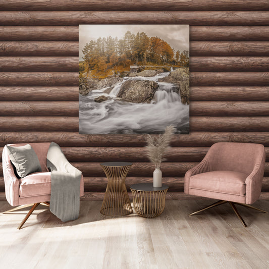 Autumn Waterfall in Misty Forest – AI Generated Norway Art